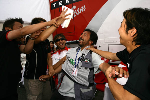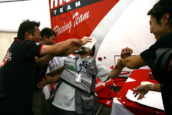 今日はフォーミュラ・ニッポン第5戦、オートポリスでの予選です。12時半にIMPUL集合ということで行ってみると、8月3日に51歳になった私のために、星野さんを始め超豪華メンバーがケーキを用意して何と誕生日のお祝いを!と、ここまでは良かったのだが・・・。