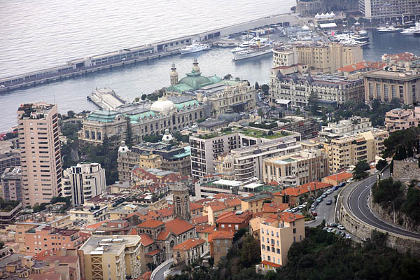 山の上でコーナリング写真の撮影中、下を見たらモナコの街が・・・。